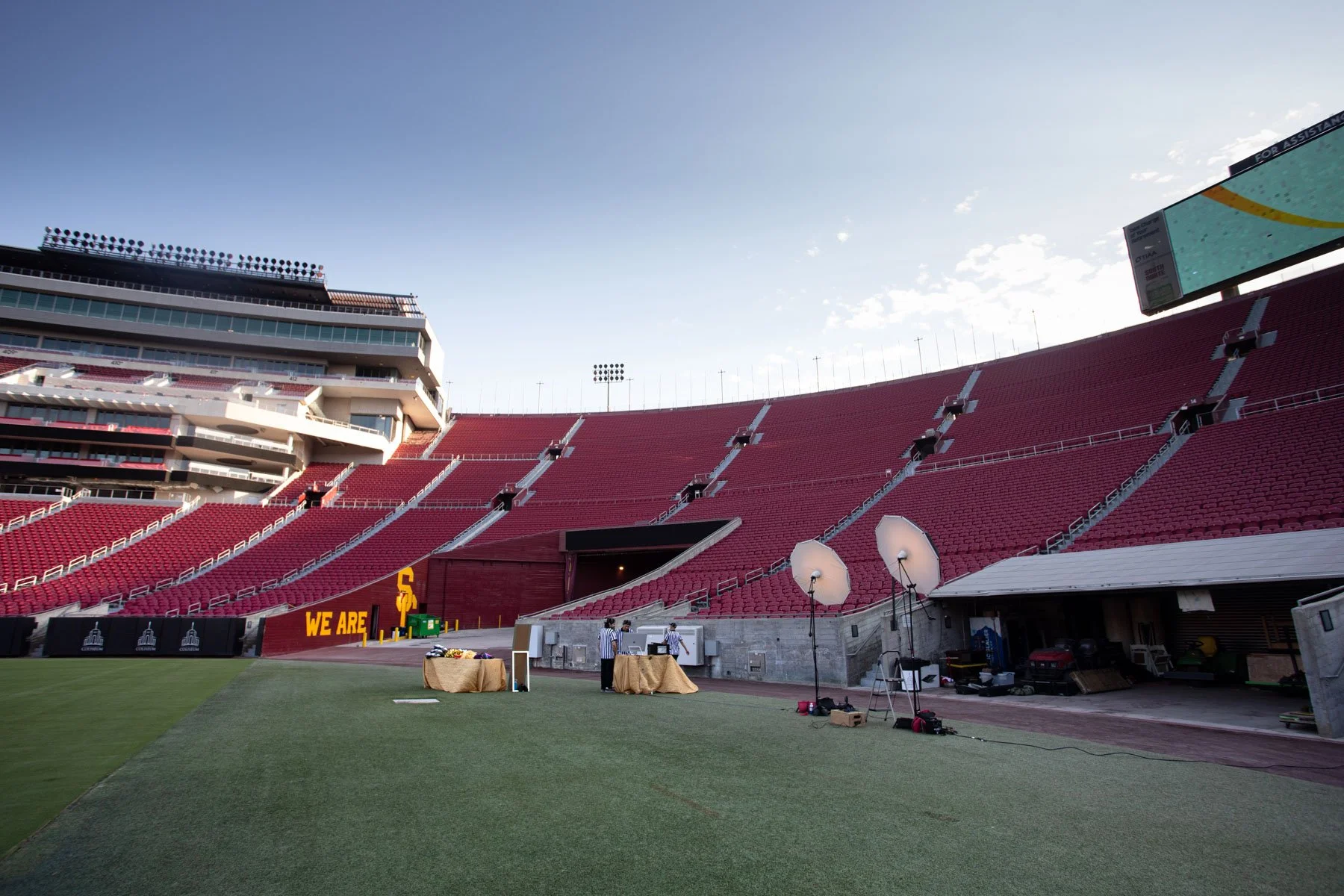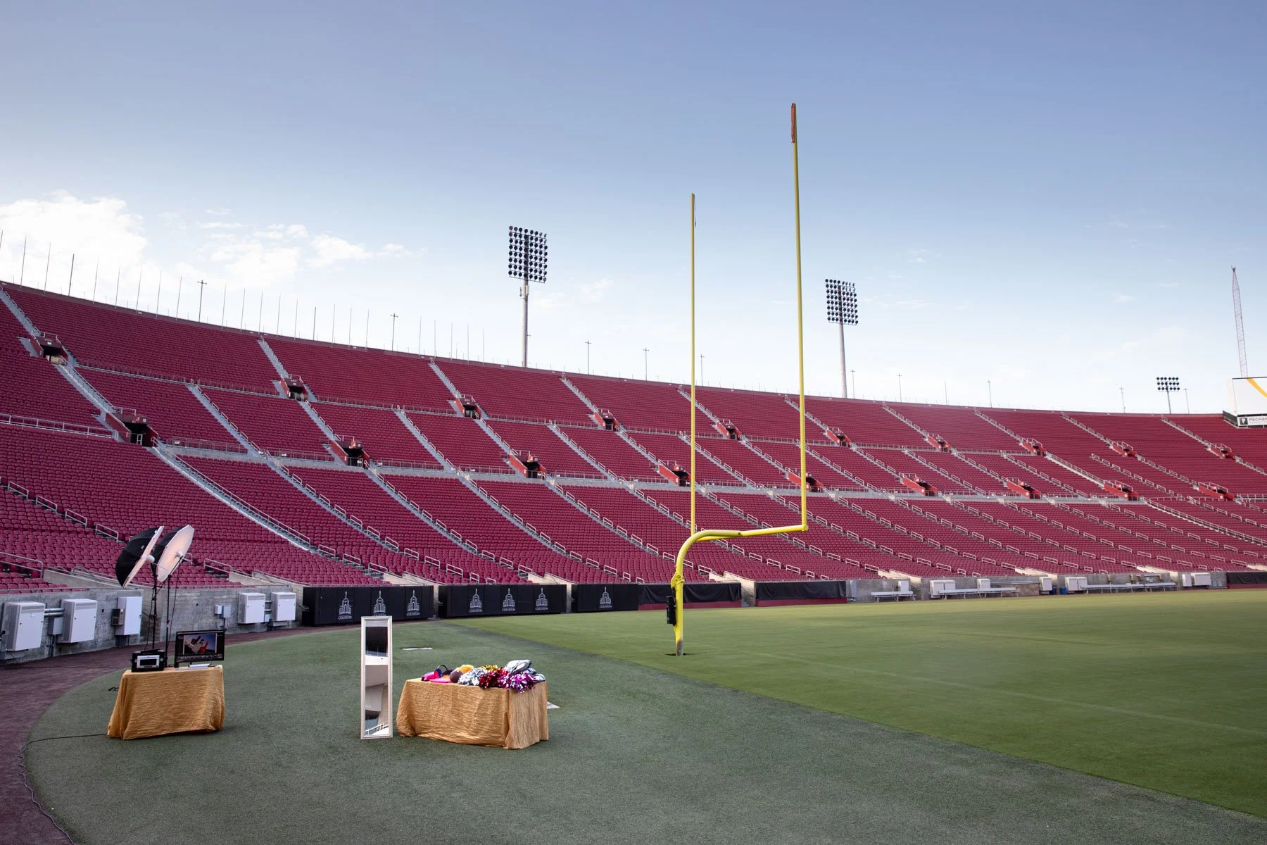 For this corporate event, our clients wanted to highlight their epic venue: LA's historic Memorial Coliseum. We brought the lighting and styling to create a high energy, sports-themed activation.