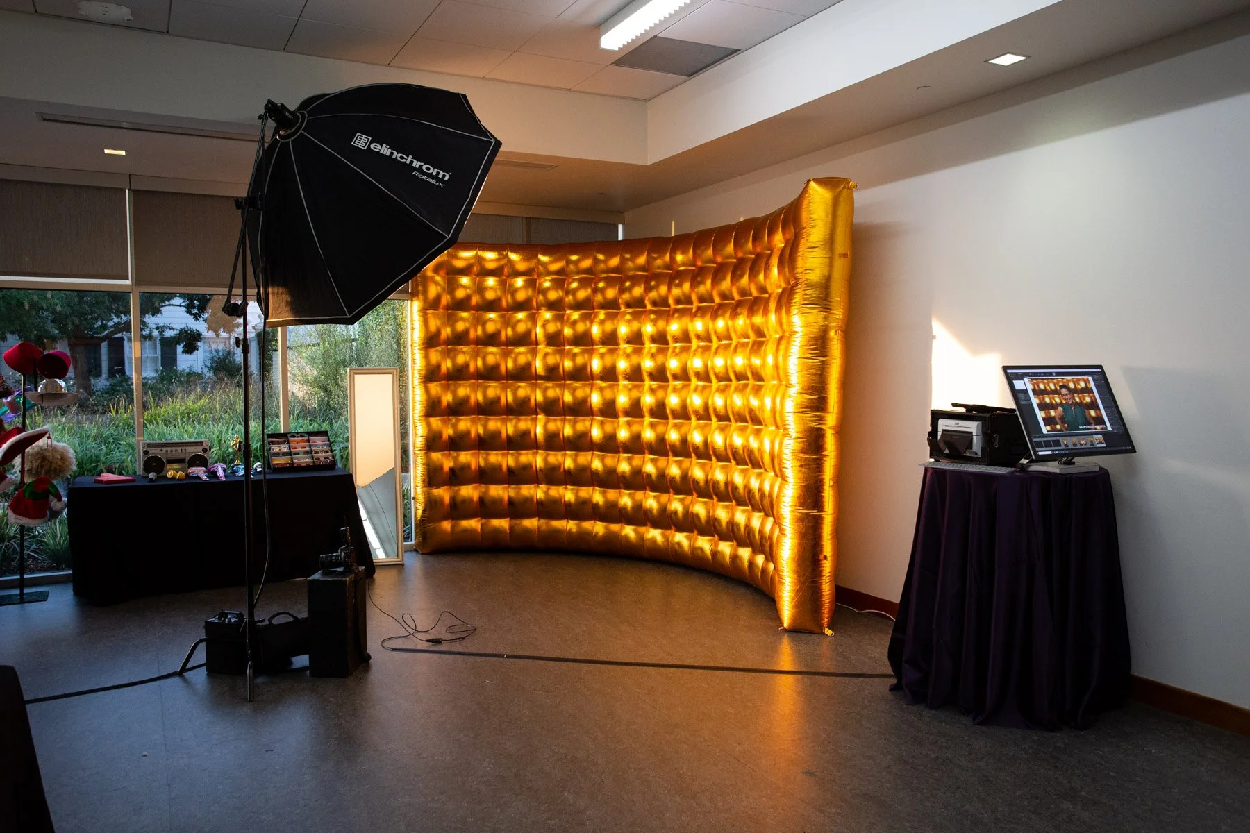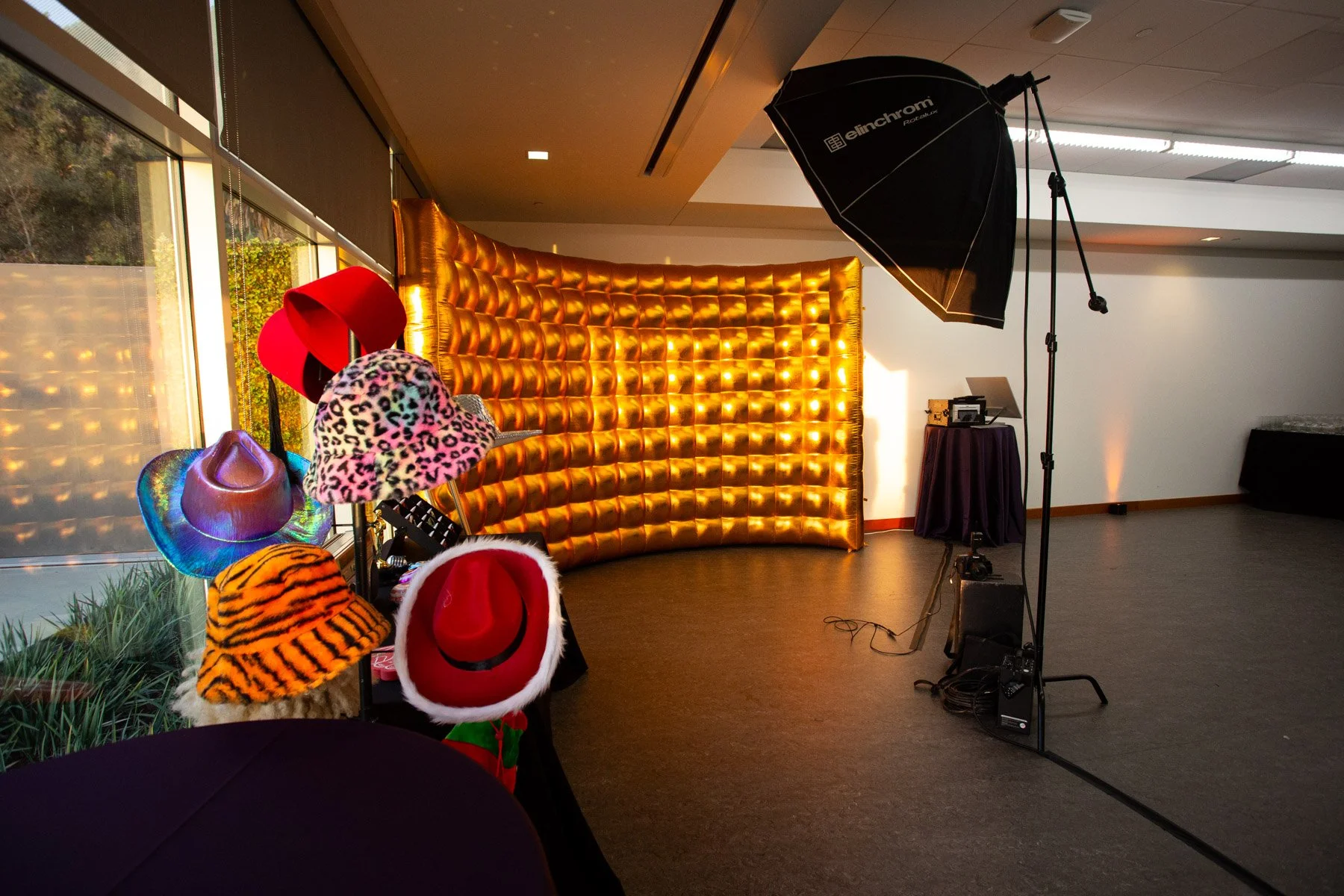 For the LAFD holiday party at the Annenberg Beach House in Malibu, we set up our Gold Inflatable and let the light-studded wall do the heavy lifting. A solid spread of props — hats, shades, mics, and a few crowd favorites — kept things loose and fun all night.