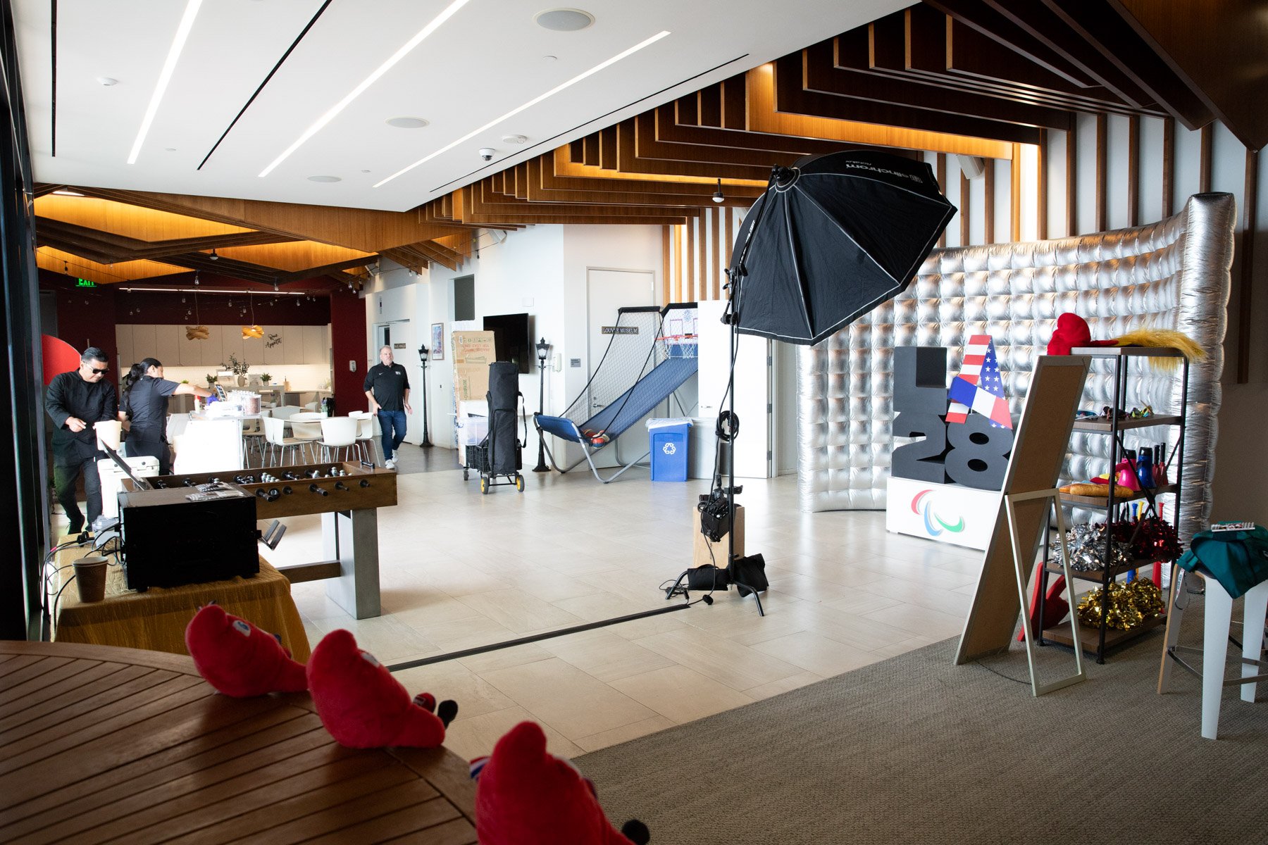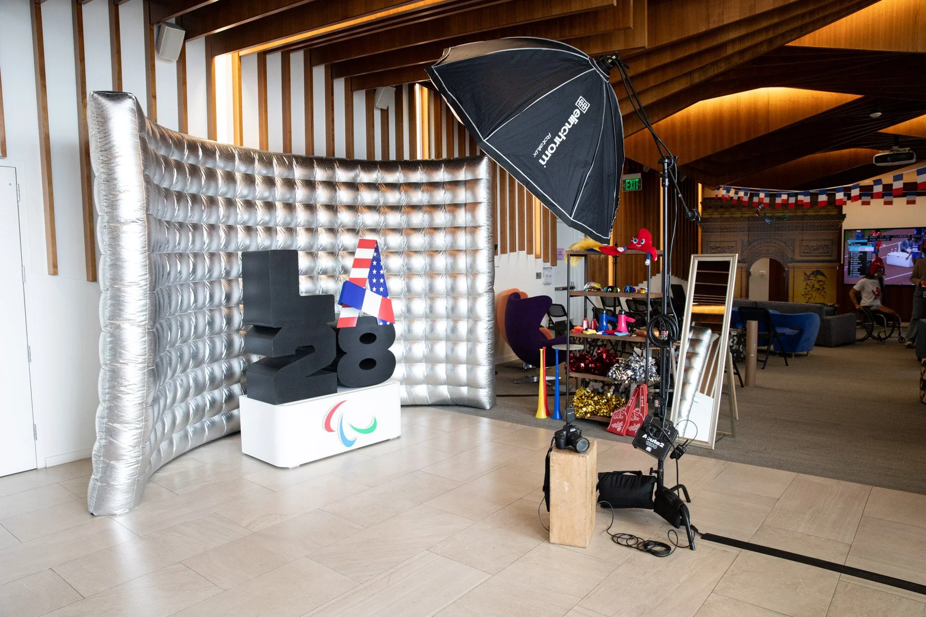 We celebrated the opening of the 2024 Paralympics with the LA28 team. Our set featured a striking LA28 logo statue, with our silver set providing an epic backdrop. Guests immersed themselves in an Olympic-themed experience, complete with authentic memorabilia including the iconic 2024 Phryges hat and an Olympic torch.